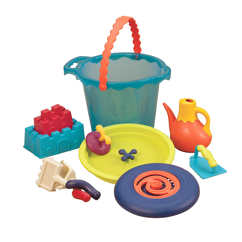 Большое ведёрко и игровой набор для песка (голубой), арт. 68701 B.Summer Battat.