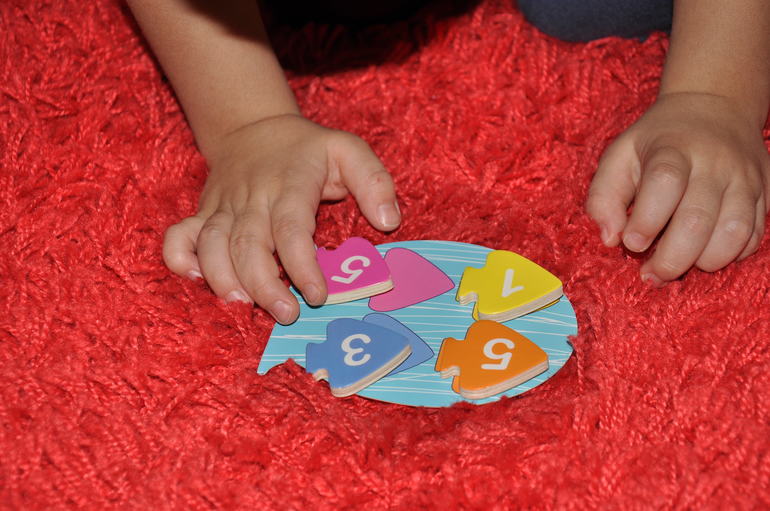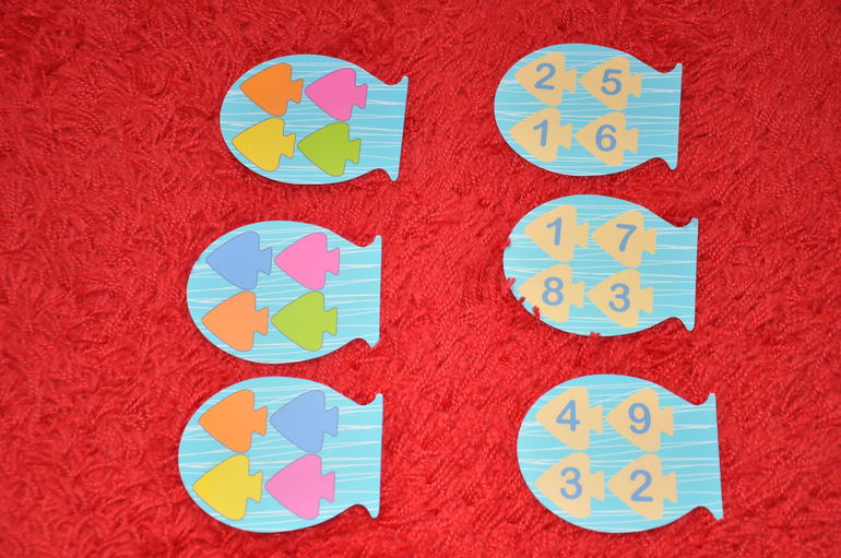Карточки вот такие - то есть можно собирать рыбок определенного цвета, а можно рыбок с определенными цифрами: