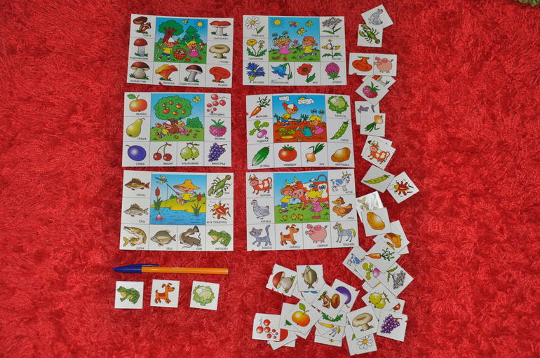 Очень простенькое по исполнению (все из тонкого картона), но полезное по содержанию лото.