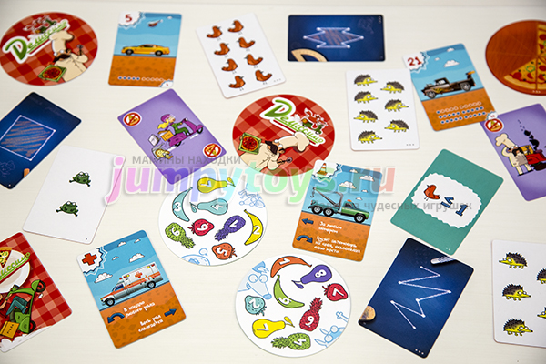 С цифрой 3, конечно, все просто. Но могла выпасть и цифра 7, например. В данном случае игрокам нужно было быстренько сложить лягушат (2+5), получить искомую семерку и быстренько накрыть карту с заданием.