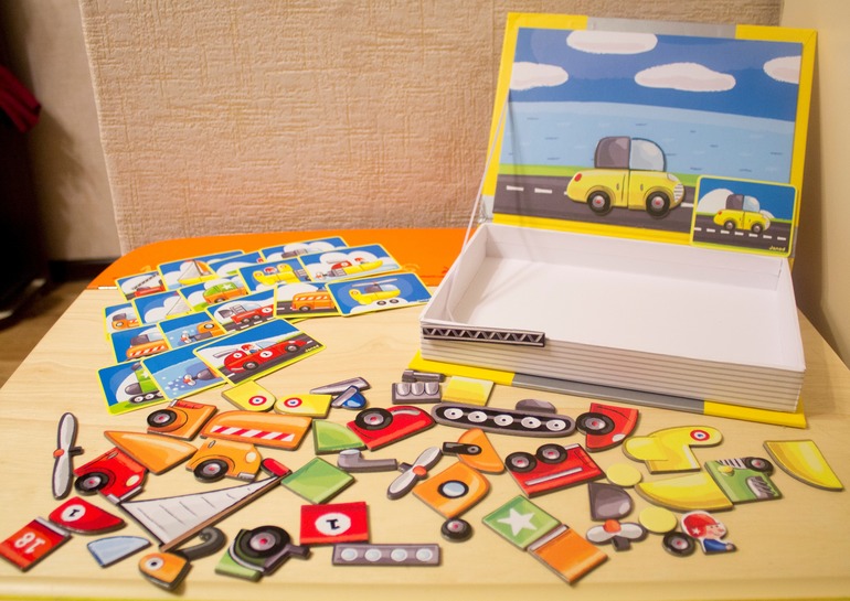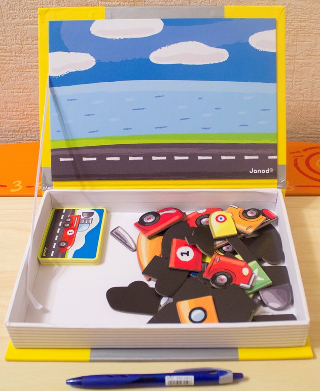 Можно, я Вам отвечу ?:) Раз уж Ксюша нам в сообществе свой хвастик разместила.(мерси-мерси еще раз!)Это Магнитная книга-игра "Транспорт", Janod. Машинки в комплекте.Книга состоит из 18 иллюстрированных карточек и 50 магнитов. Размер книги — А4.