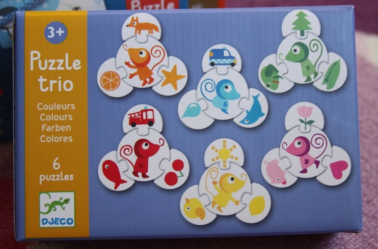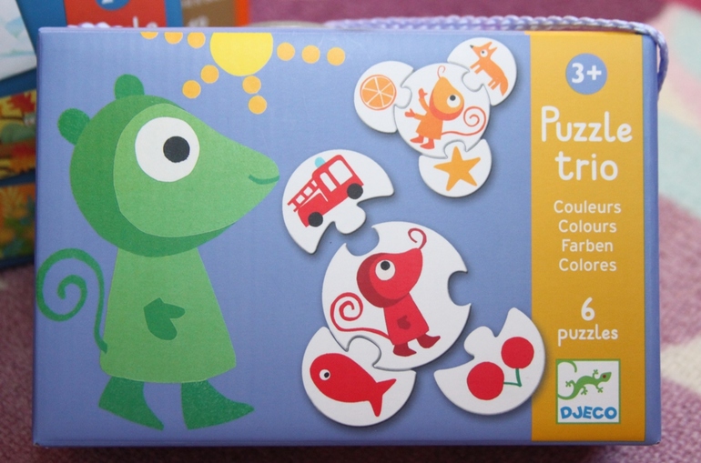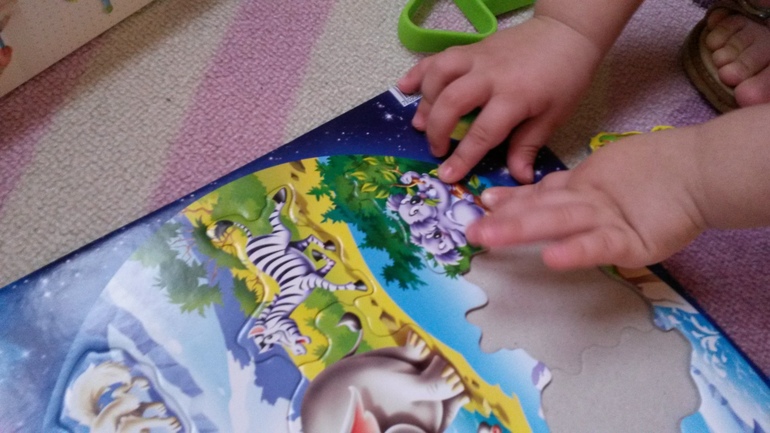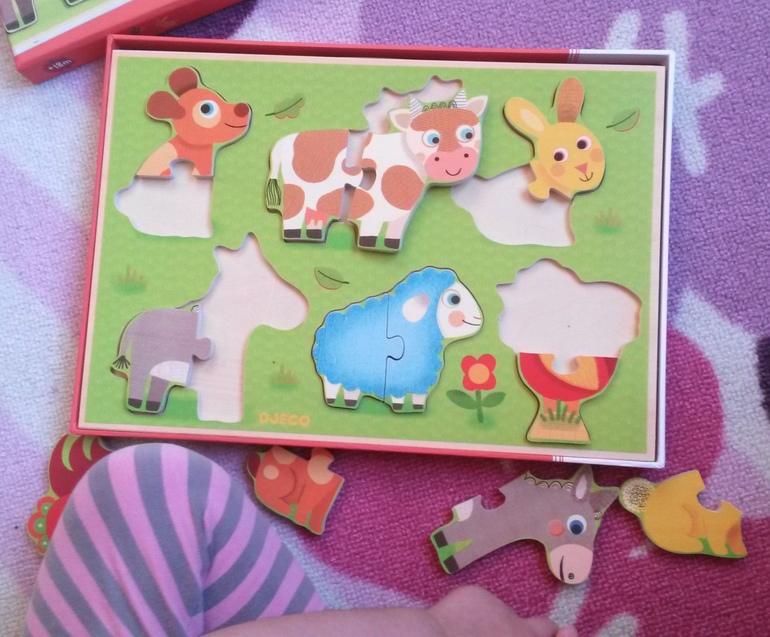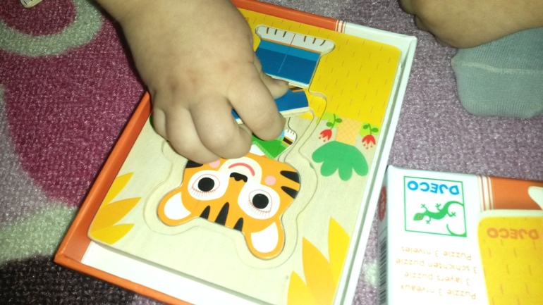 1. После пазлов-вкладышей в 1 г 5 мес мы перешли к трехслойным пазлам Djeco. Процесс у Веры пошел сразу же, думаю можно было и пораньше пробовать начинать.