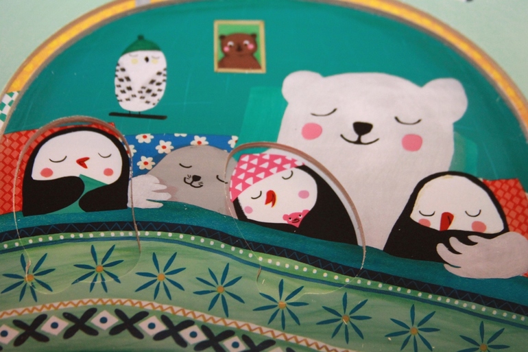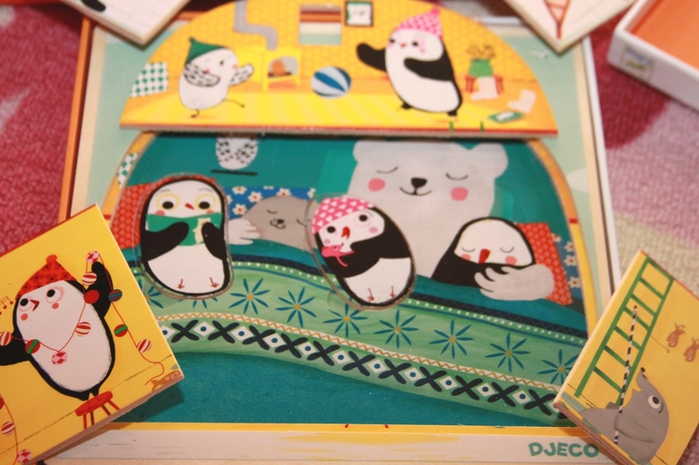 Вобщем, мы остались пазлом довольны, и даже папа пришел из др комнаты, когда услышал новую, неведомую ему доселе, историю про Медведиков и Пингвинят :)