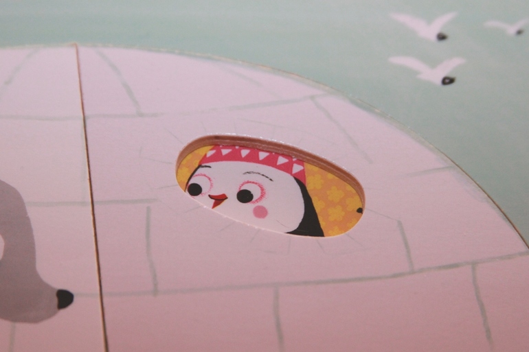 Интересная вырубка, первый слой - домик-иглу с дверкой и окошечком, в которые видно обитателей домика. Особенно нам понравилось окошечко, заглядываем и говорим "ку-ку" :))