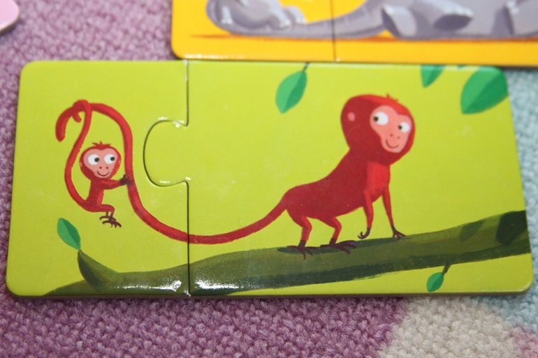 - для каждого животного есть сове место-рамочка, как в пазлах-вкладышах (только не такая глубокая рамочка), привычных малышам, половинки не расползаются при сборке, что позволяет деткам доделать начатое до конца, пыхтеть и попадать замочком куда надо ))