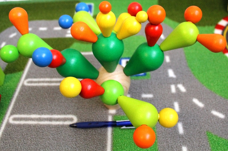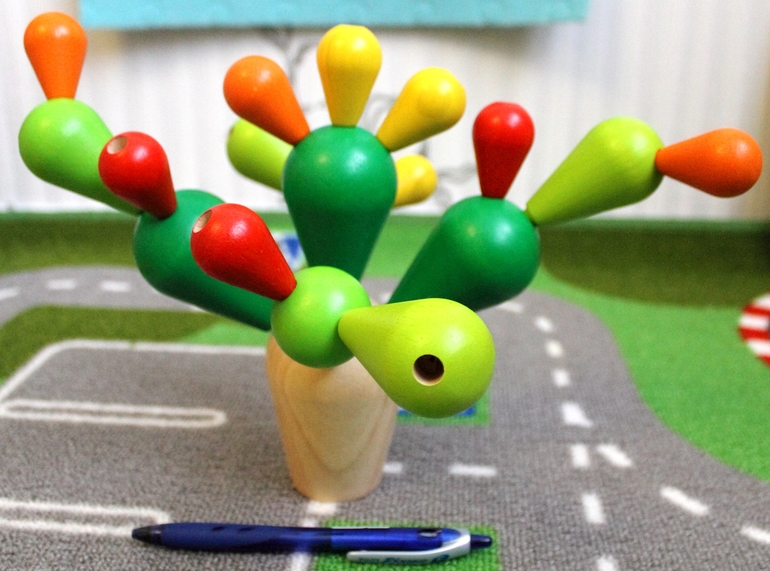 Еще одна замечательная игра на развитие мелкой и крупной моторики,а так же еще и с усложнением, игрой на баланс - кактус. В наборе само основание и 18 деталек кактуса, разного размера и цвета. Очень большой плюс так как можно опять же изучить не только цвета,но и оттенки,плюс понятие больше-меньше.