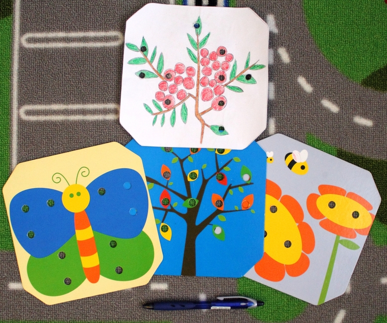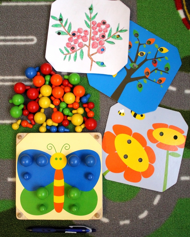 Вот они - яркая красивая бабочка,дерево с цветными листочками(самый сложный уровень),и цветок с пчелкой. Нам хоть и 1,9 месяцев,но мы до сих пор еще не освоили дерево. У мозаики большой потенциал,и что мы только с ее помощью не делаем,и сортируем ,и используем в сенсорных коробочках, и даже варим супы для наших любимцев.