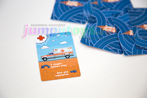 Поэтому игрок получает "штраф", то есть забирает себе ряд из четырех карт, а свою ставит первой, ей и начинать новую пробку.