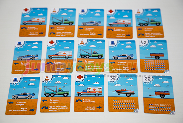 Итак, специальные карты. Вот они: скорая помощь, полиция, прицеп и эвакуатор (по личным причинам его назвала в последнюю очередь =)