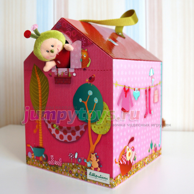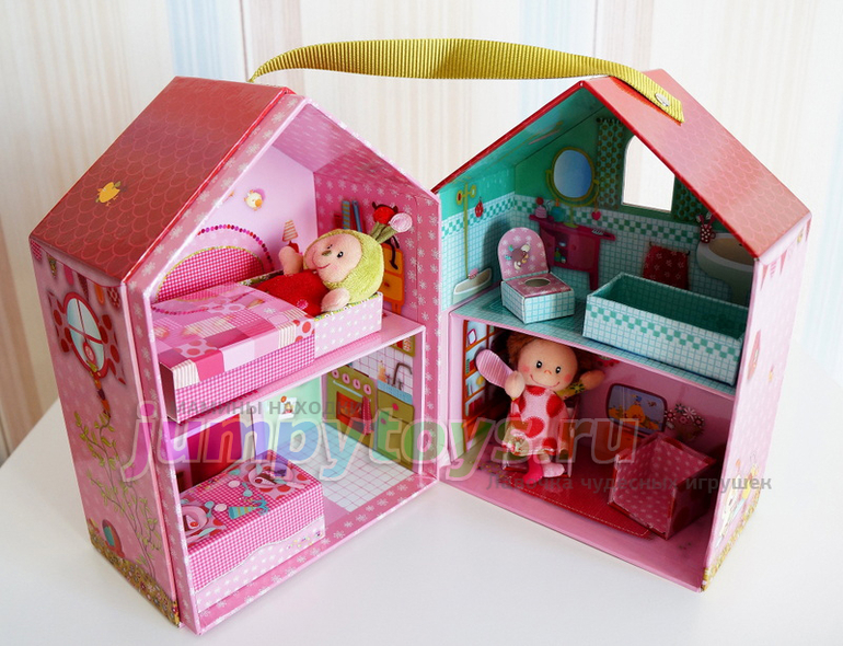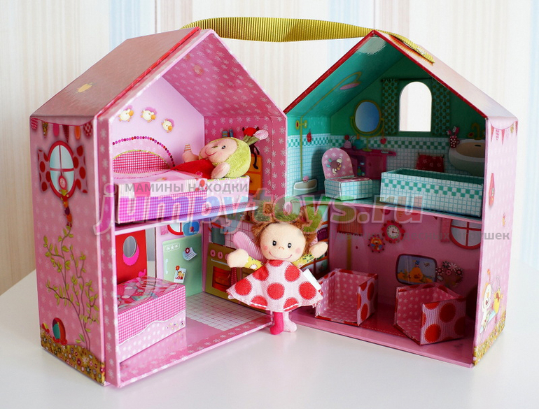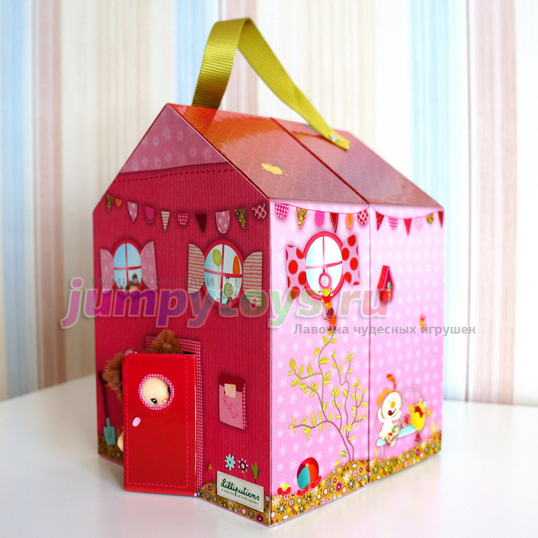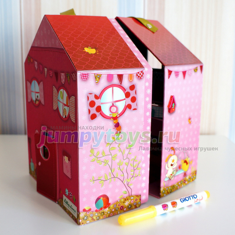 Закроем домик, и он превратится в компактную коробочку с удобной ручкой для переноски: