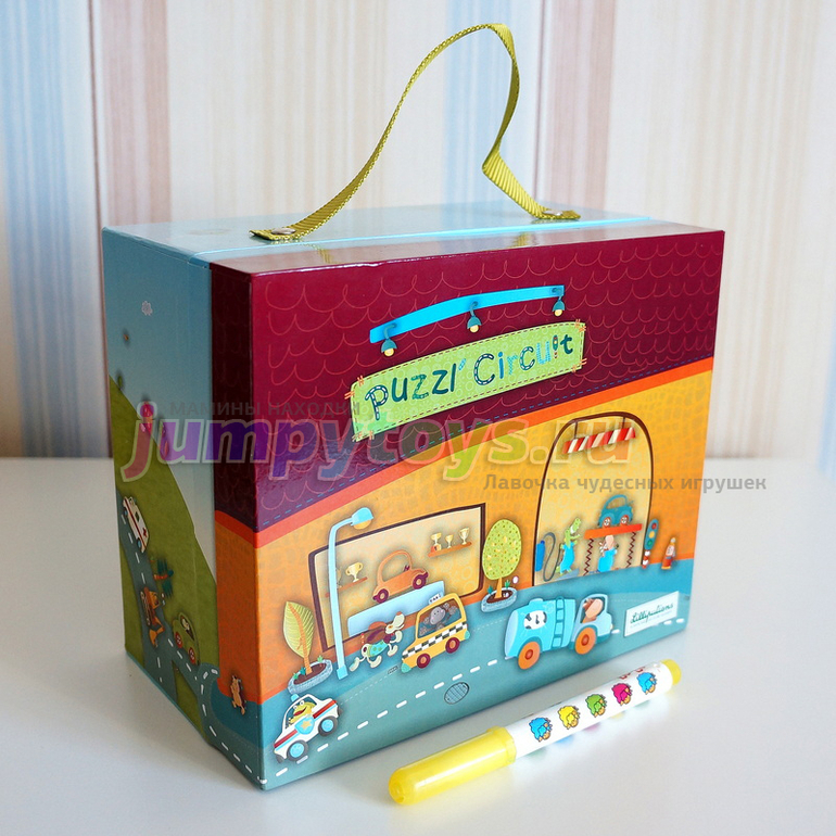 А вот еще что можно сделать, посмотрите! Детали пазла могут соединяться и с коробочкой! Вот такая схема дорог получилась у нас сегодня: