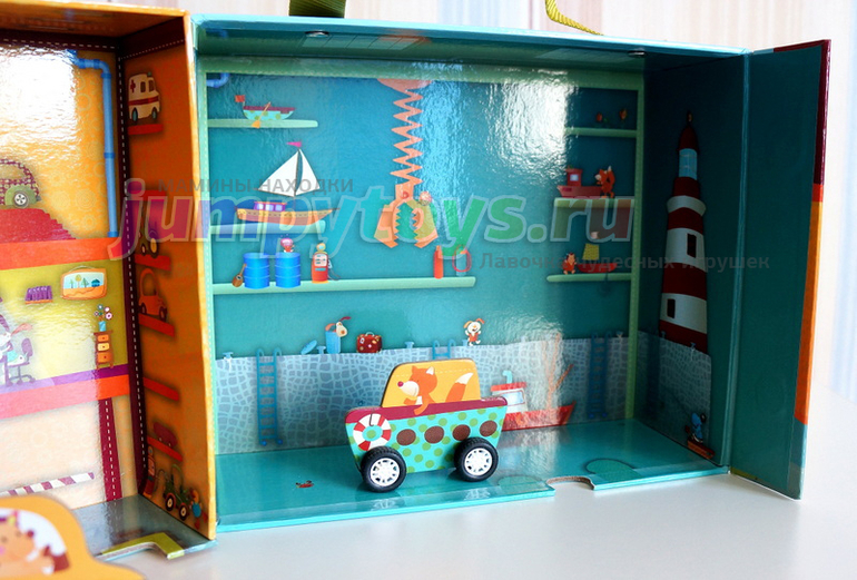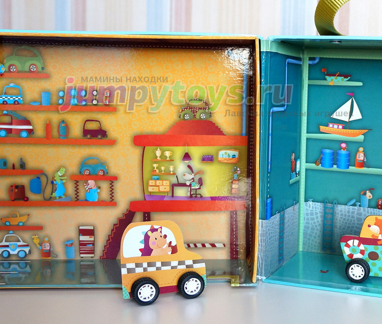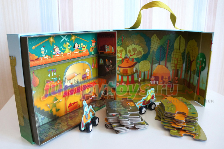 Обратите внимание, что вдоль дороги изображены сцены из сказок. Ребенок может фантазировать бесконечно, путешествуя по этим дорогам! А ведь это прекрасный инструмент для развития речи и творческого мышления - и в совместной игре, и в самостоятельной.