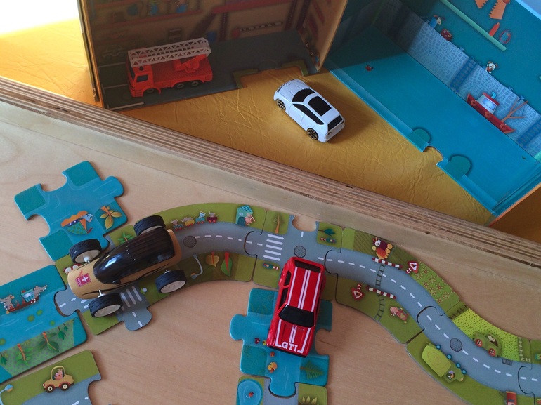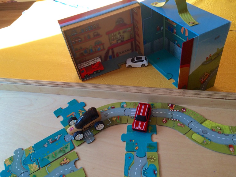 Ваши отзывы, хвасты, фотоУвидела у вас коробочки с пазлами-дорогами, тоже решила поделиться, как мы играем в наш гаражик )) Эта волшебная коробочка кочует с нами из комнаты в комнату, тут же прокладываются дороги. Правда, иногда дорога вдруг становится рекой, сын пока не особо обращает внимание, как выкладывать детальки пазла, переворачивает их - но это неважно )))) И машинки из набора катаем, и все свои любимые - тоже.