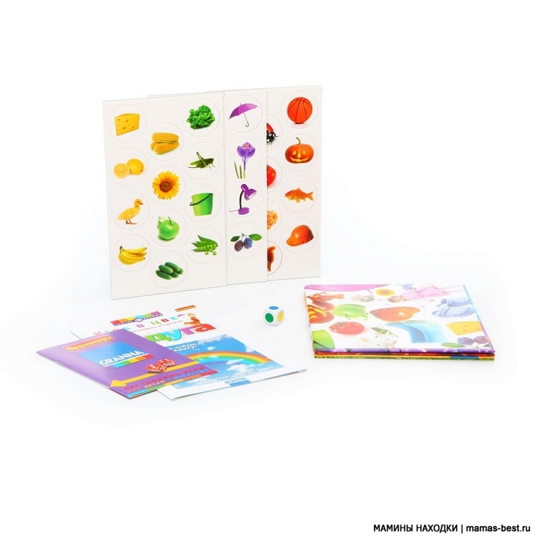 - От 5 лет. Положите лицевой стороной вниз фишку на поле (цвет предмета и поля должны совпадать). Так нужно сделать по 1 разу с фишкой каждого цвета. Киньте кубик. Если сторона кубика будет красная, то участник должен сказать, что изображено на фишке на красном поле. Если он угадал, то карточка его. На пустое место нужно положить карточку этого же цвета. Побеждает игрок, набравший большее количество картинок
