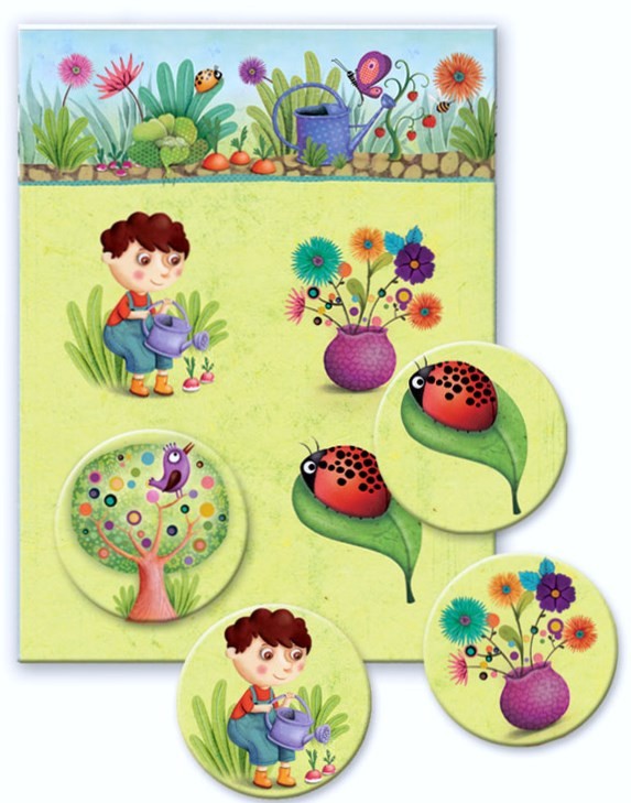 В комплект входят карточки с заданиями и 48 небольшие квадратные фишки, которыми нужно заполнить игровые карточки согласно количеству нанесенных изображений.