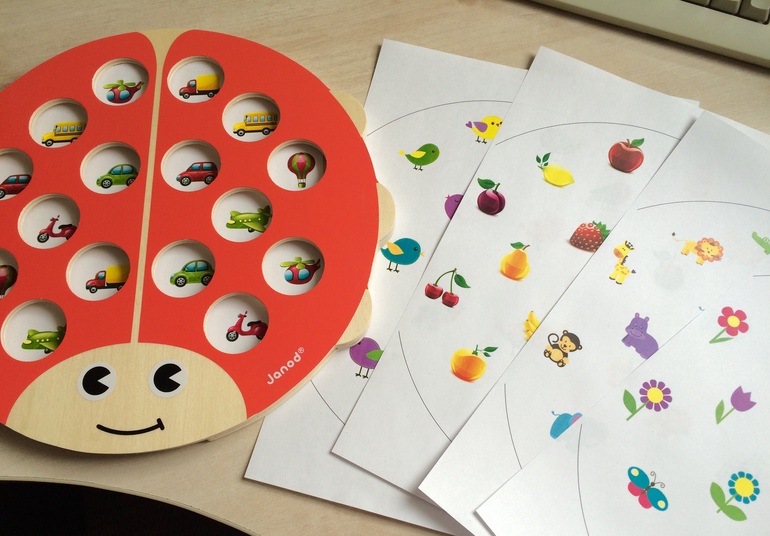 А еще я вот что придумала, вдруг кому идея пригодится. У нас есть наборчик наклеек Djeco, а в нем как раз все наклейки по 2 штуки. Я просто сама наделаю еще шаблонов с этими наклейками! А у вас в Лавочке есть эти наклейки, где посмотреть?