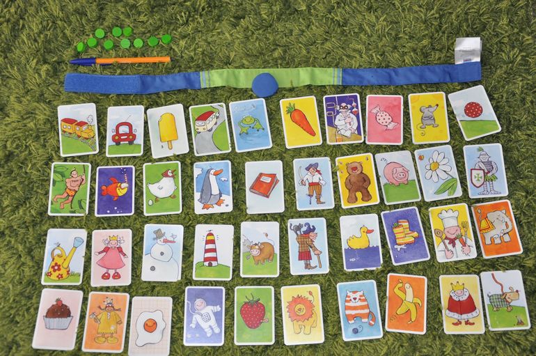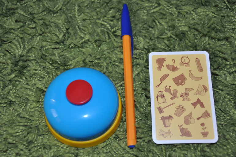 Мы пока играем по упрощенным правилам - без фишек и победителей - просто угадываем, что изображено на карточке по очереди.