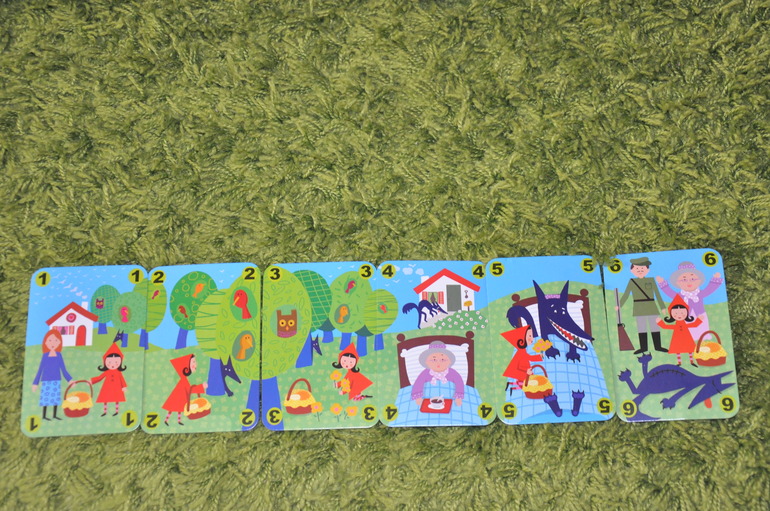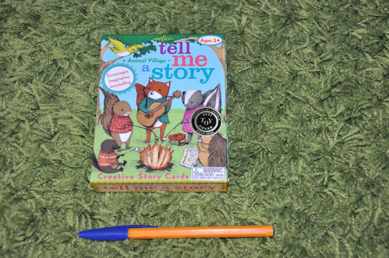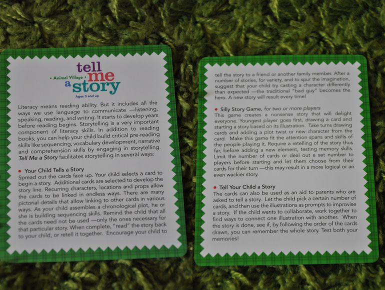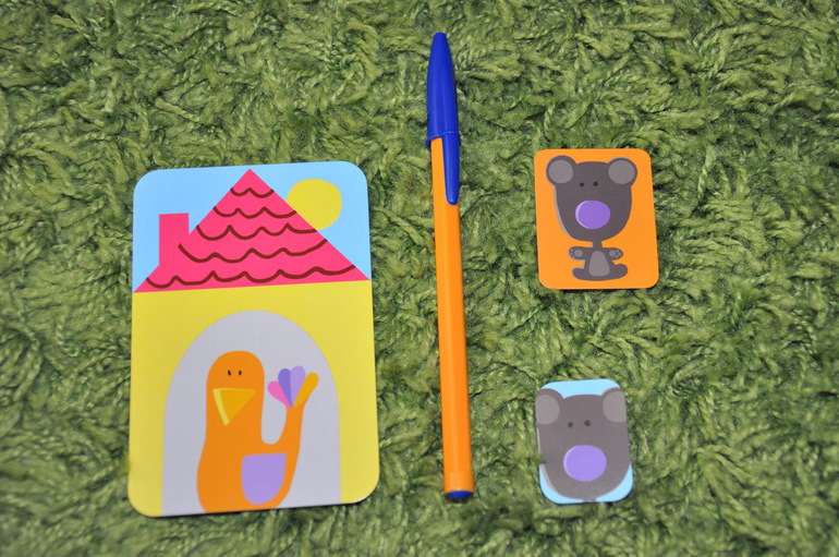 1) Ребенок рассказывает историю, открываю поочередно карты из колоды и пытаясь связать из сюжетно между собой (для этого на карточках прорисовано множество деталей);