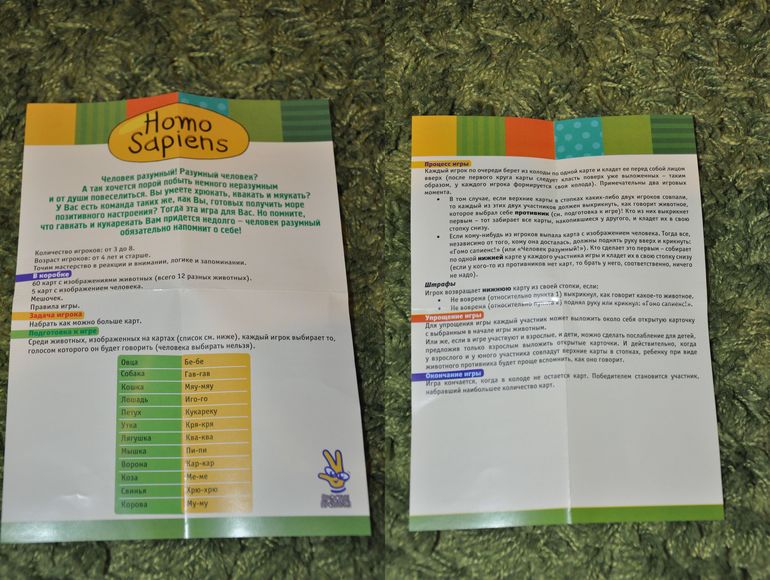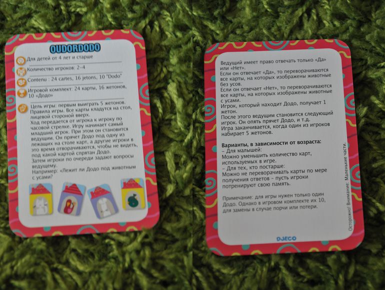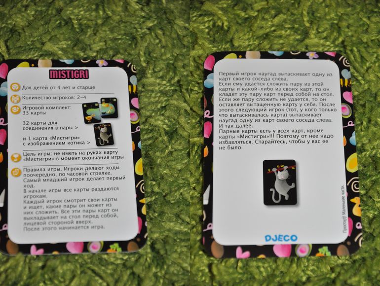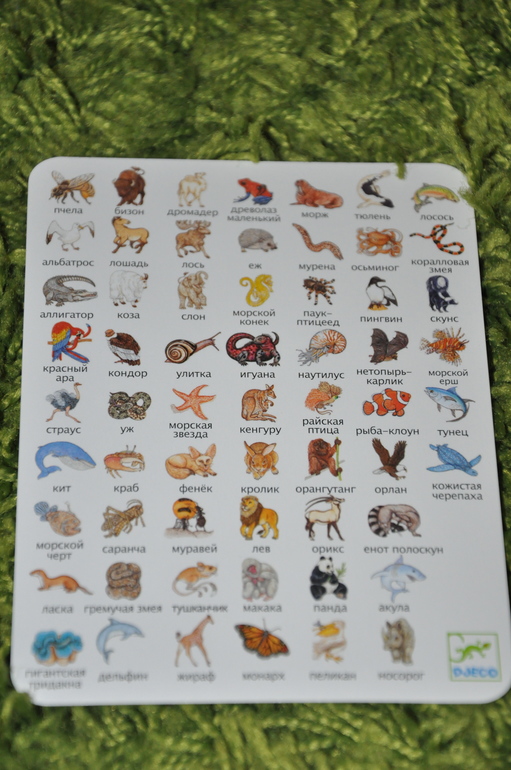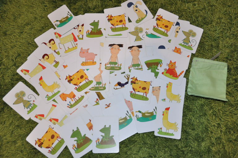 Внутри 12 больших карт-путаница и 60 маленьких карт "животные".