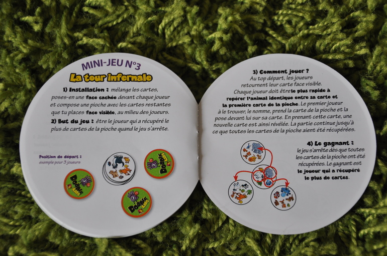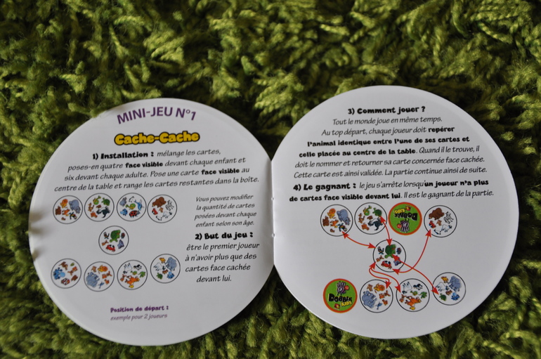 Как играть: прежде всего игроки переворачивают свою карту картинкой вверх. Теперь каждому игроку нужно быть первым, кто найдет одинаковы животных на своей карте и на карте вверху колоды. Первый, кто это сделает, называет это животное, забирает верхнюю карту из колоды и кладет ее на свою карту. После этого верху колоды оказывается новая карта. Партия продолжается до тех пор, пока в колоде не останется карт.