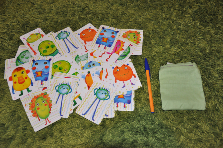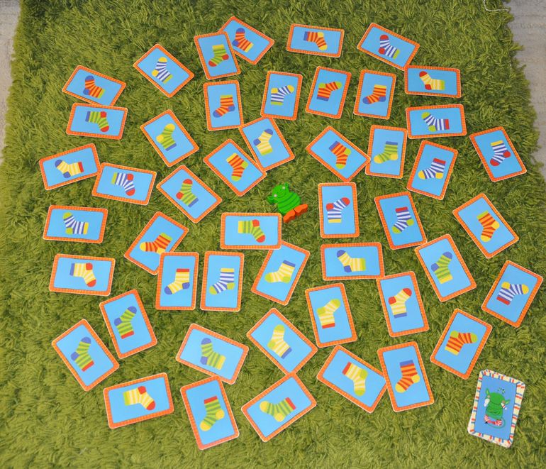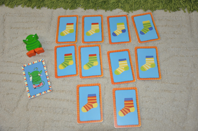 Перед началом каждого раунда все карты с носками перемешиваются и кладутся картинкой вверх вокруг фигурки носочного монстра. Карты с носочным монстром кладутся отдельно.