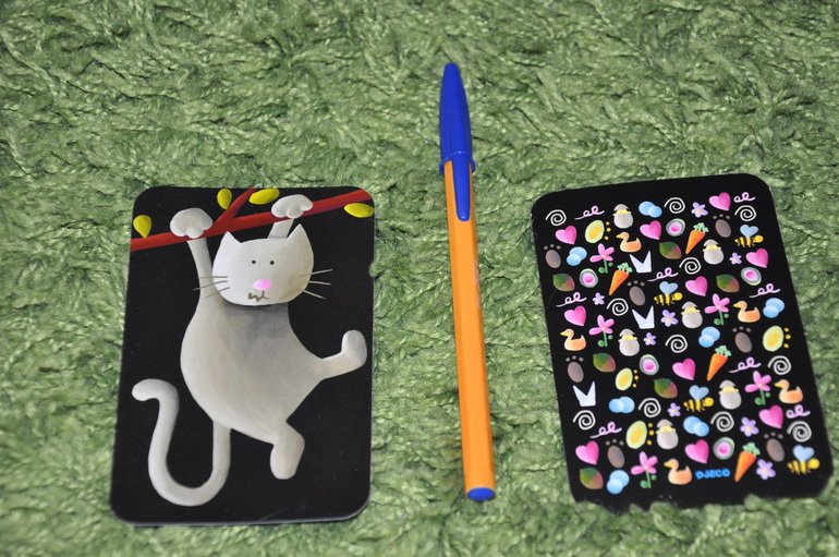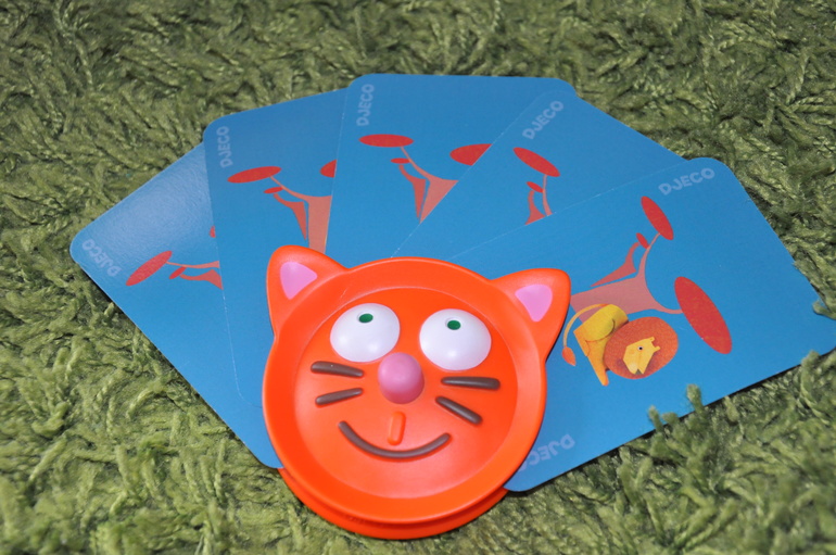 Для того, чтобы детям было удобнее удерживать все карты в руках, Djeco придумали вот такого котика: