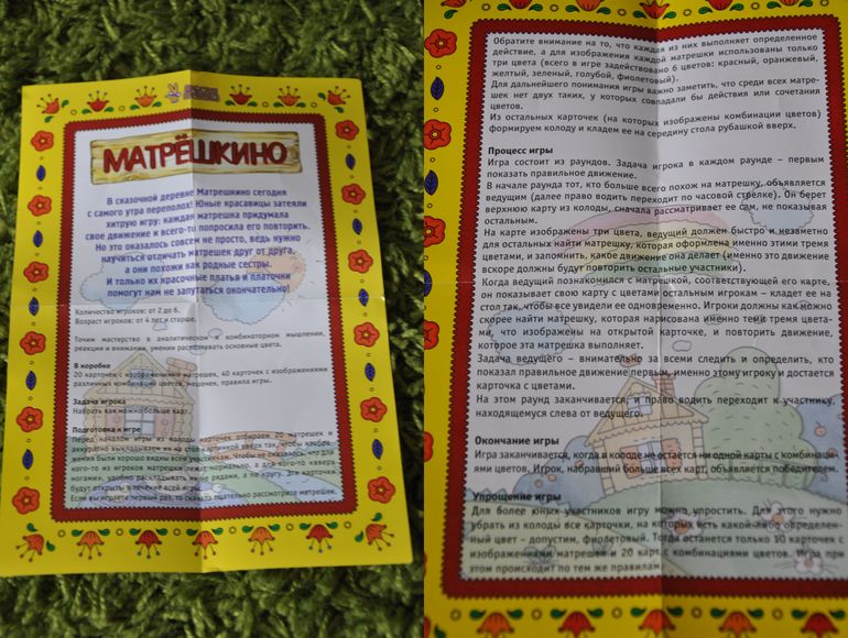 Вариантов игры производителем предлагается как минимум 5 - перевод мой (зря что-ли язык учила?))), так как на русском правил найти не удалось . Так что, как говорится, простите за мой французский))). Фотографии привожу из-за картинок раздач, для наглядности.