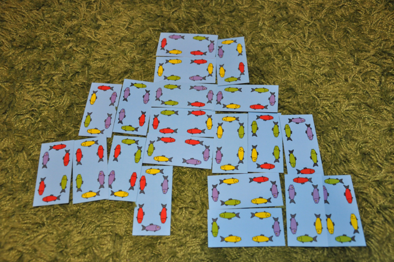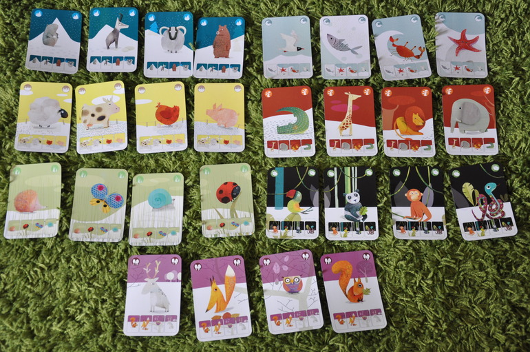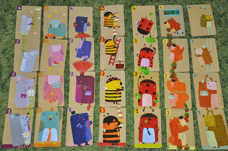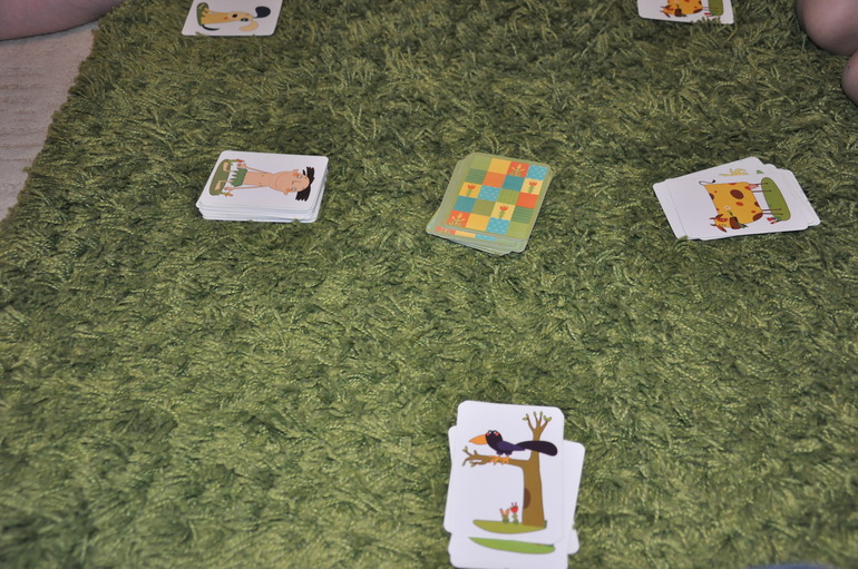 Принцип абсолютно тот же - только теперь собираем папу/маму/дочку/сына из соответствующих семейств зверей, а вначале игрокам раздаётся по 4 карты.