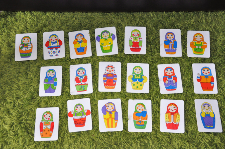 Карточки с сочетаниями цветов нет смысла показывать, а с матрешками вот: