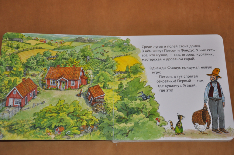 Страницы у нее из плотного картона, и поэтому она рассчитана на малышей лет 2-3, хотя по содержанию и идее интересна всем)