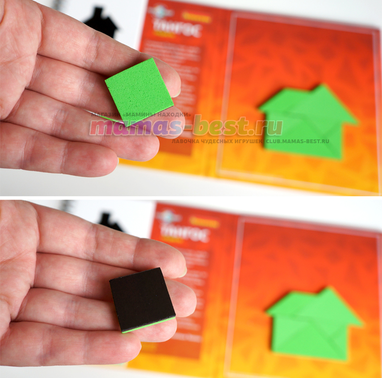 Детали головоломки выполнены из вспененного материала на магнитной основе. Магнитный слой - сплошной, это делает детали более крепкими: