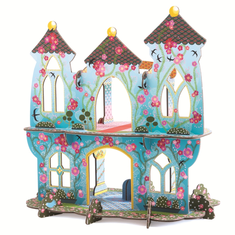 Игрушка станет красивым фоном для игр с куклами, принцессами и прочими любимыми игрушками вашей девочки. За счет того, что конструкция легкая и яркая дети любят их переносить в разные места для своей игры. Надежные крепления от французской компании Djeco не позволят развалиться волшебному замку.