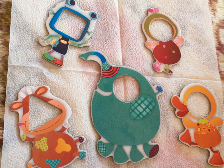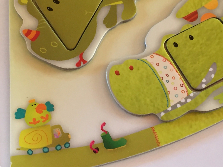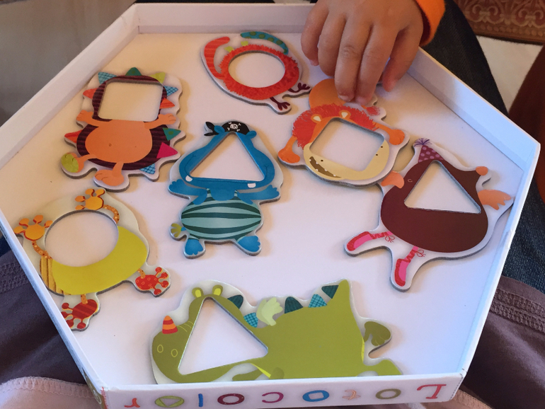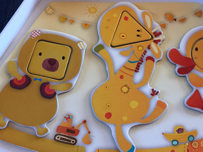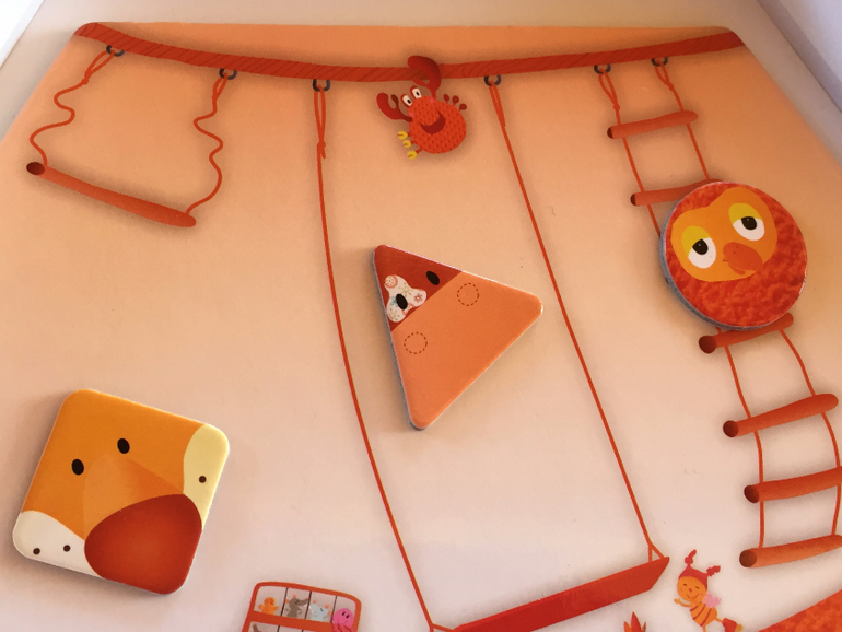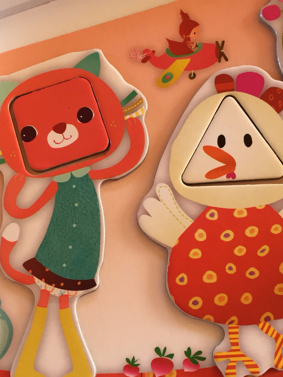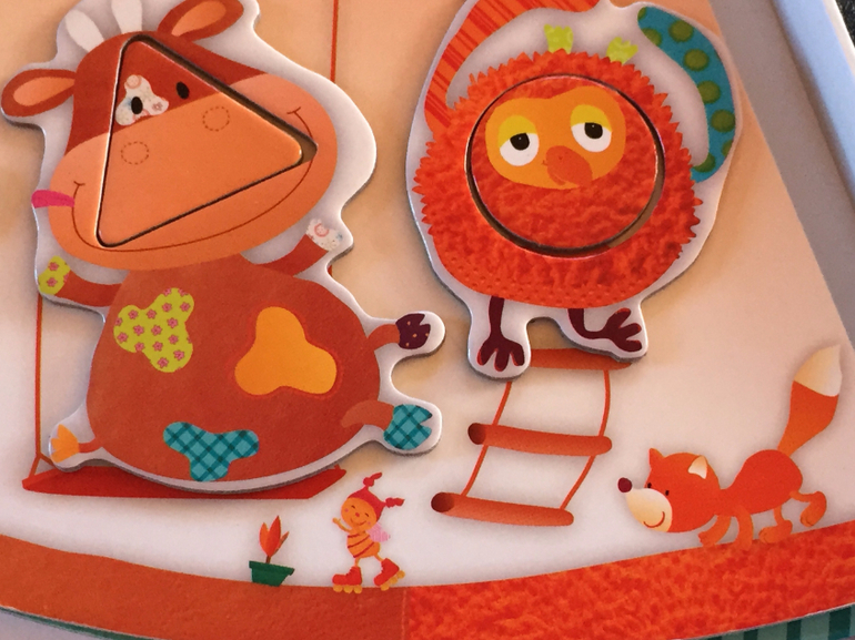 То есть недостаточно просто "надеть" животное на выступающий элемент (круг, квадрат или треугольник) его домика. Нужно еще понять, как правильно его расположить. В этом частично может помочь соотнесение рисунков, расположенных на выступающем элементе домика и самом животном. Соотнесение рисунков, правда, возможно не для всех, и это плюс, я считаю, так как с каждым зверенышем нужно и можно искать свои способы.