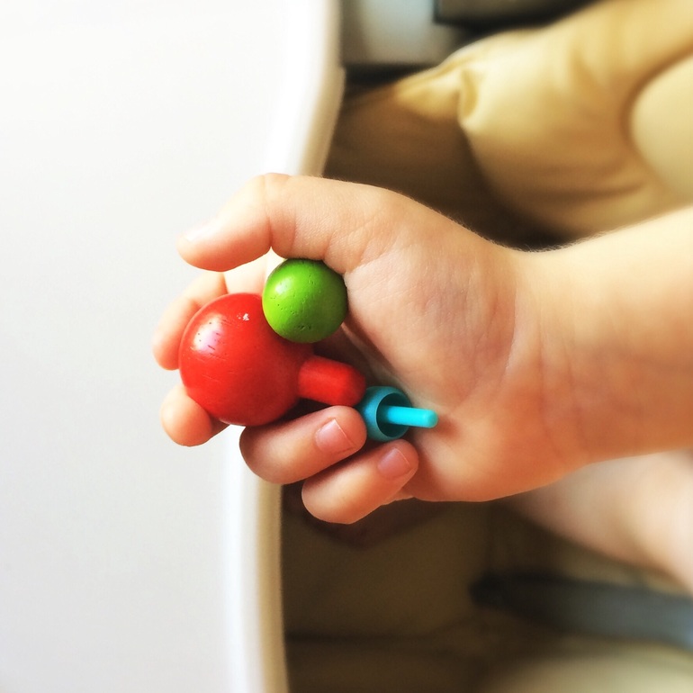 То же самое - в детской ручке. Конечно, движения с маленькими детальками уже более тонкие, точные. Для развития мелкой моторики - огромная польза!