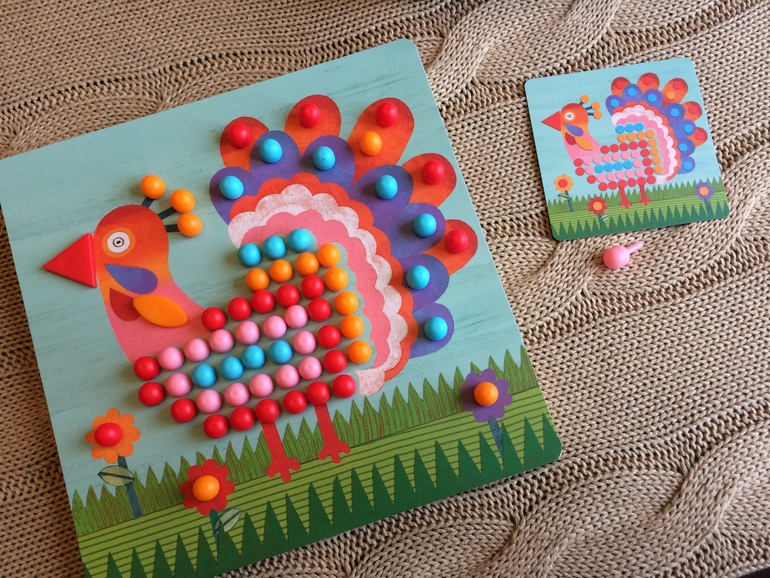 К слову, досочка у мозаики Plan toys всего 5х5 дырочек, то есть можно разместить 25 "гвоздиков". А у джековских - 17х17! Итого 289 дырочек!!! Такой простор для творчества!