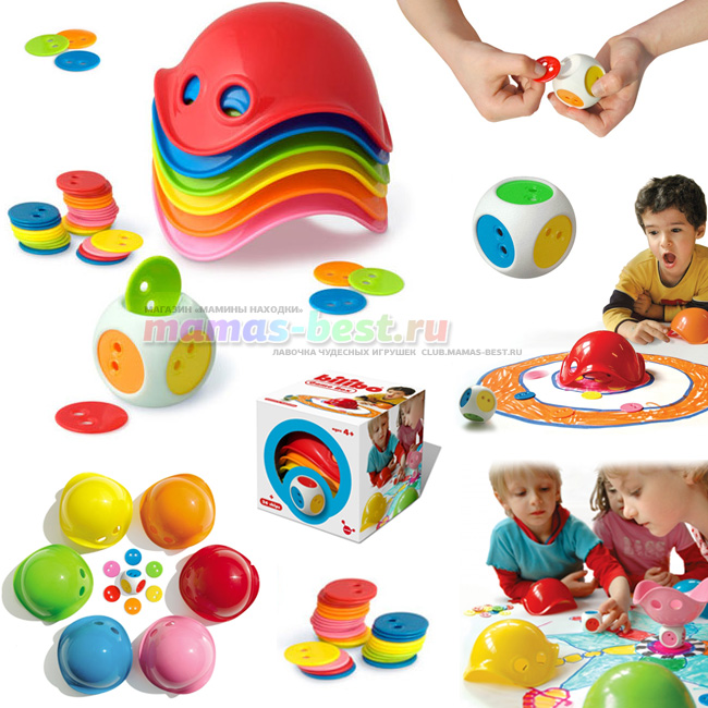Возьмите шесть Мини-Билибо, добавьте кубик с 36 цветными чипами - и вот у вас восхитительный конструктор для бесчисленных игр и веселых встреч, которые объединят всю семью. Изучайте цвета и их сочетание, играйте в блошки, стройте башню, удерживайте равновесие, щелкайте и попадайте в цель, бросайте и ловите, сортируйте, считайте и учитесь, бросайте кубик и придумывайте свои собственные игры!