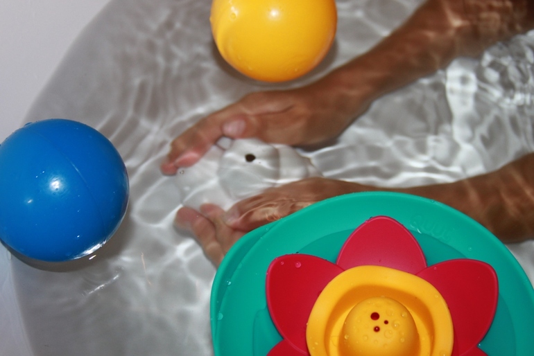 Игрушек в ванной у нас каких только не было: мы и резиновых зверей покупали (все внутри плесневеет, повыкидывали), и пирамидки пластиковые хорошо шли в ход.