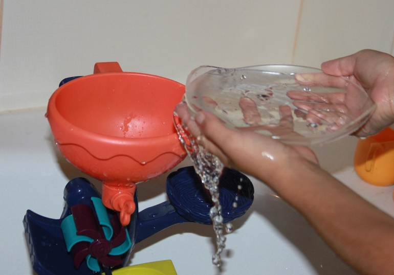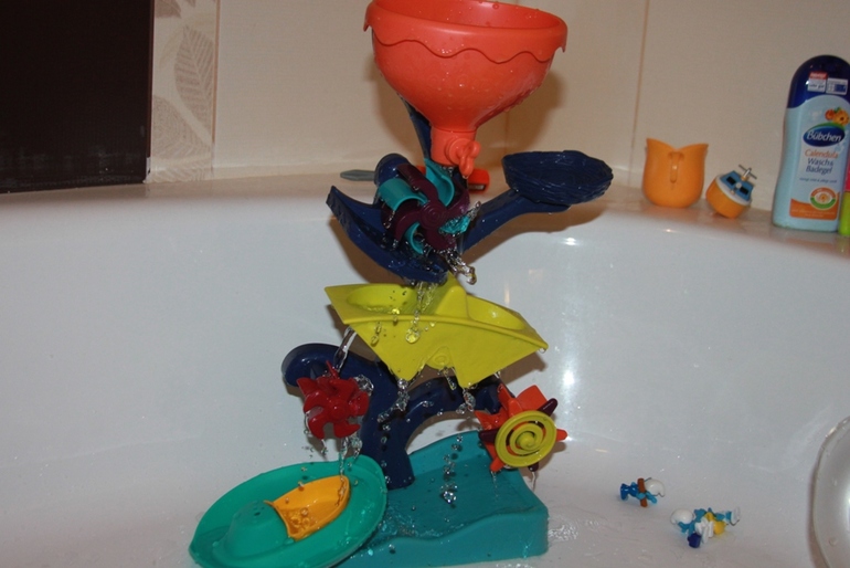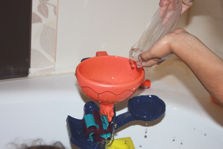 С год примерно у нас в ванной поселилась вот такая мельничка бататт - заявлена как для песка и воды, брала я ее с расчетом брать с собой в песочницу, но опробовали ее сначала в ванной, там и оставили - дети расстаться с ней были не готовы ))