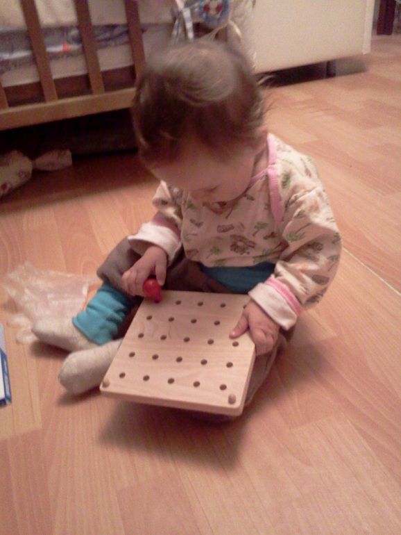 Он тогда так усердно старался работать пальчиками, чтобы воткнуть детальку в отверстие!! Пыжился, пыхтел, но делал!