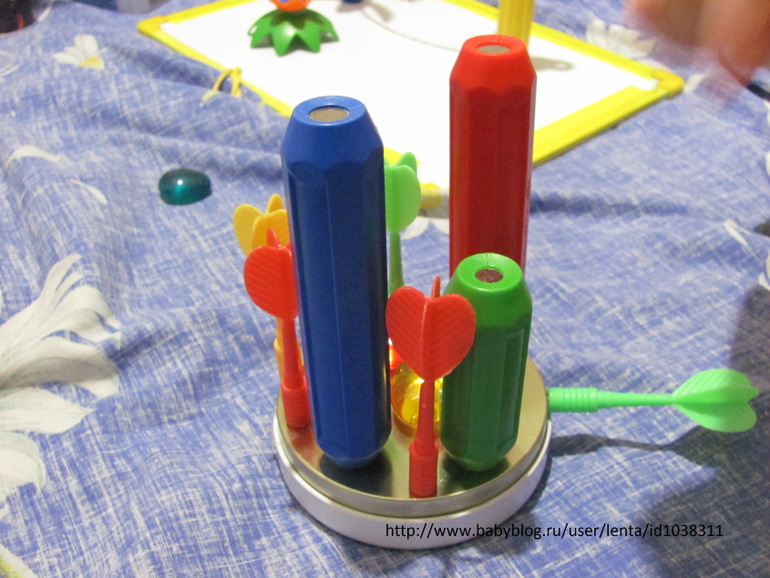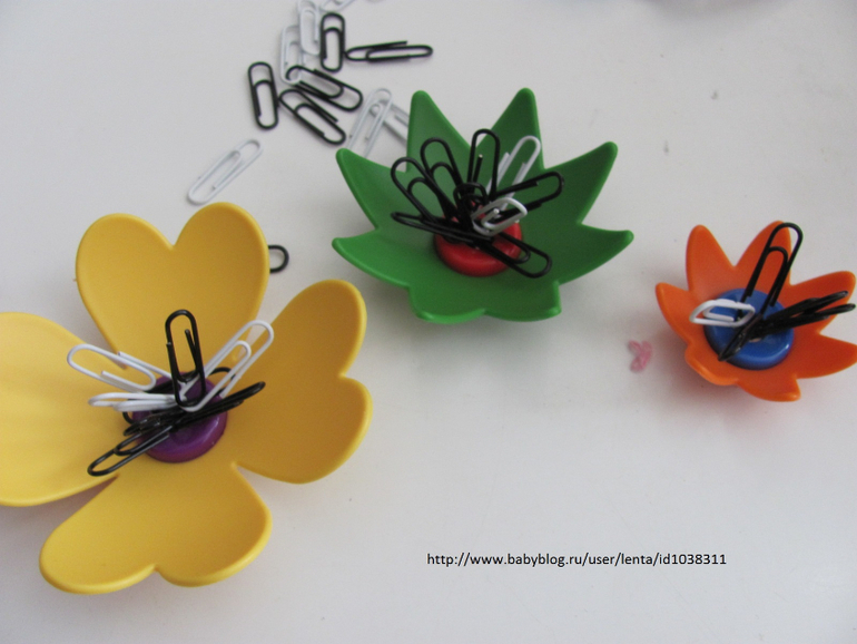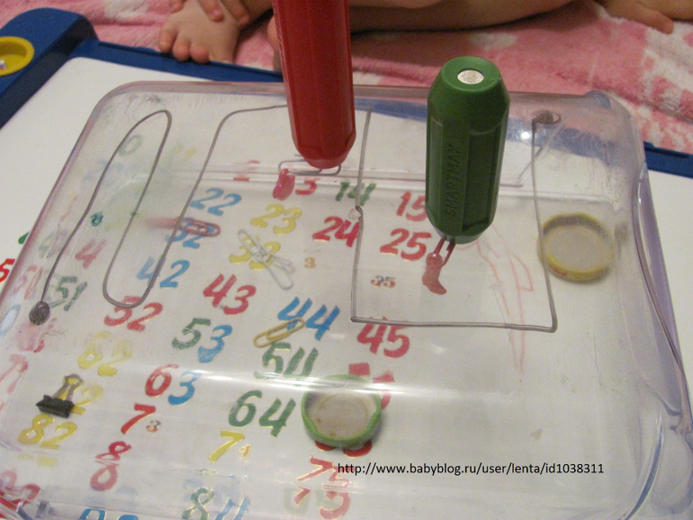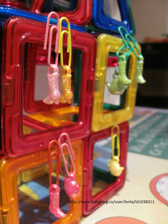 И напоследок - это магнитный конструктор, а значит любой (безопасный) металл,который есть в вашем доме притянет. Можно поискать совместно ребенком.