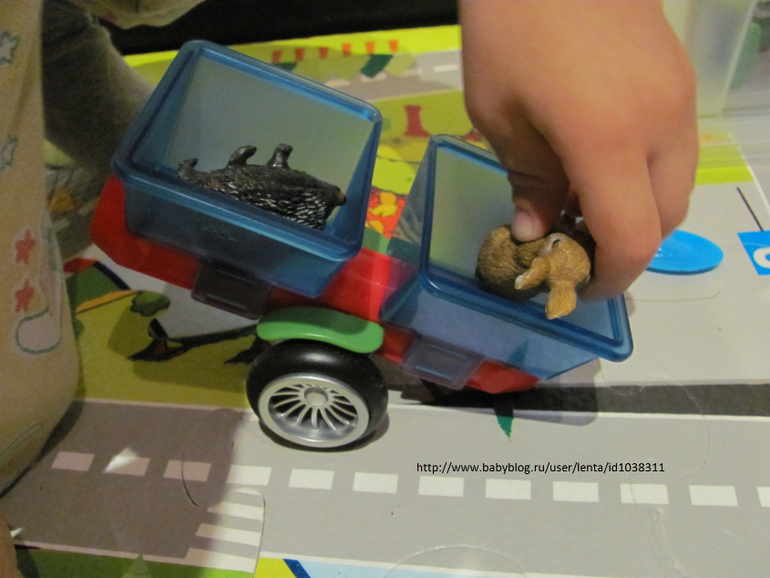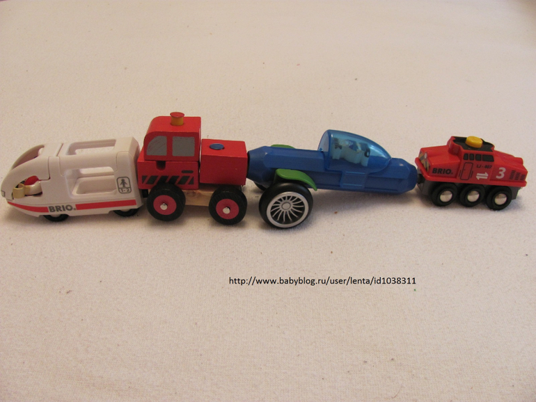 Строили сначала как на картинке, но потом стали фантазировать. Прицепляли к машинкам с магнитной сцепкой