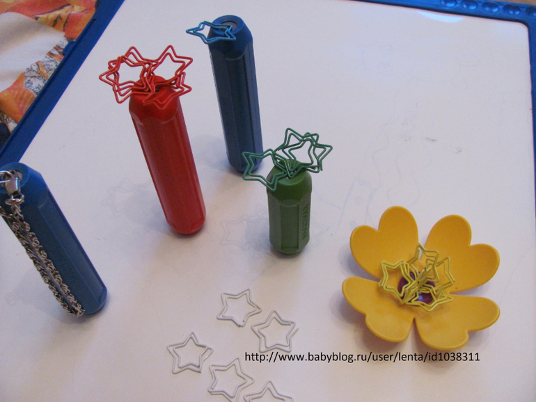 На скрепке повесели фигурки, и опять по линии - и в конце попасть в крышку