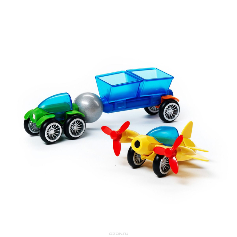 Магнитный конструктор "На земле и в воздухе" содержит 15 элементов (наша первая покупка). Собирается самолет и машина. Самое главное -в наборе есть колеса.