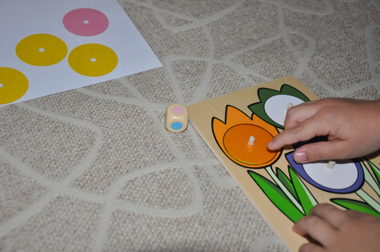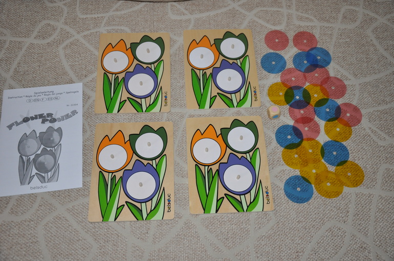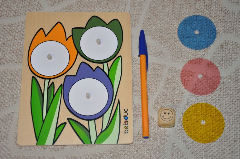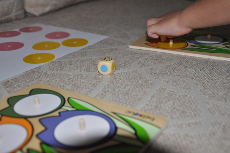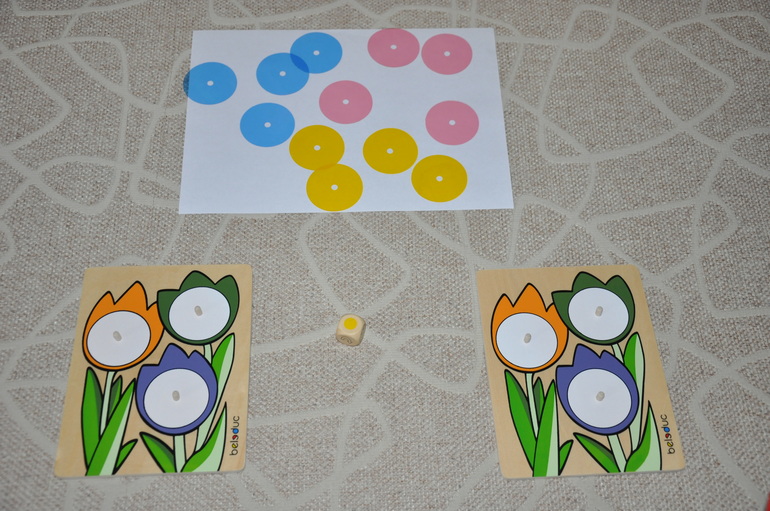 Дальше по очереди бросаем кубик и либо кладем на свои цветочки кружки выпавшего цвета, либо выполняем следующие действия: