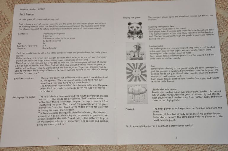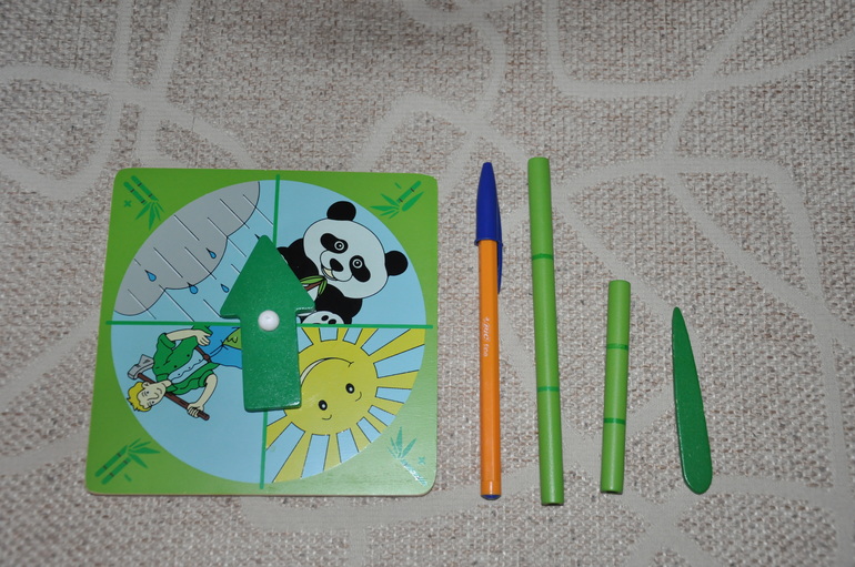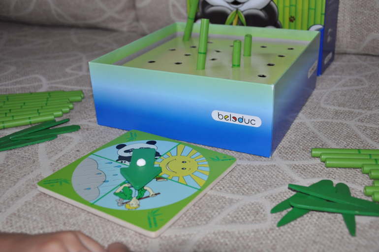 Перед началом игры "сажаем" несколько стеблей бамбука на "поле" (длина стеблей не имеет значения), остальные стебли и листья делим между игроками. Коробку с пандой ставим так, как будто панда за нами наблюдает (так прямо в инструкции и написано)))