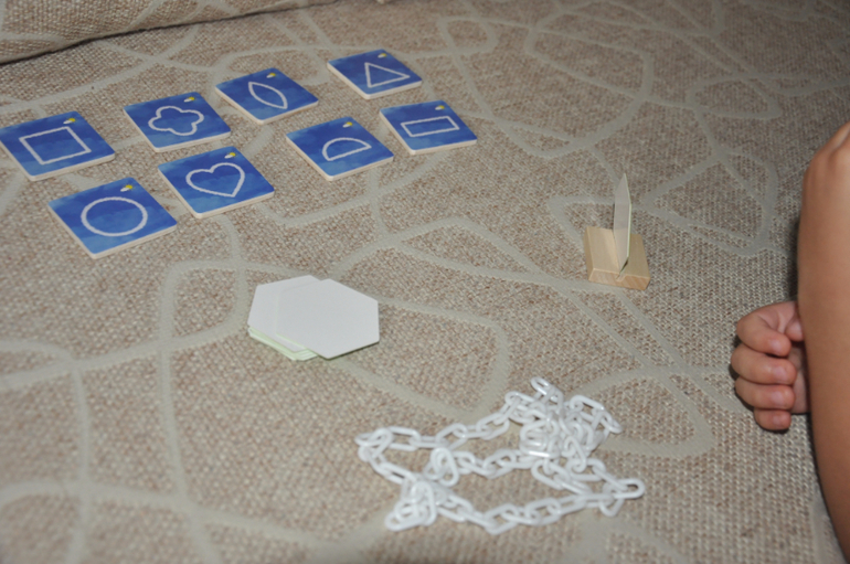 А шестиугольные картонные карточки перемешиваем и складываем стопкой картинкой вниз.