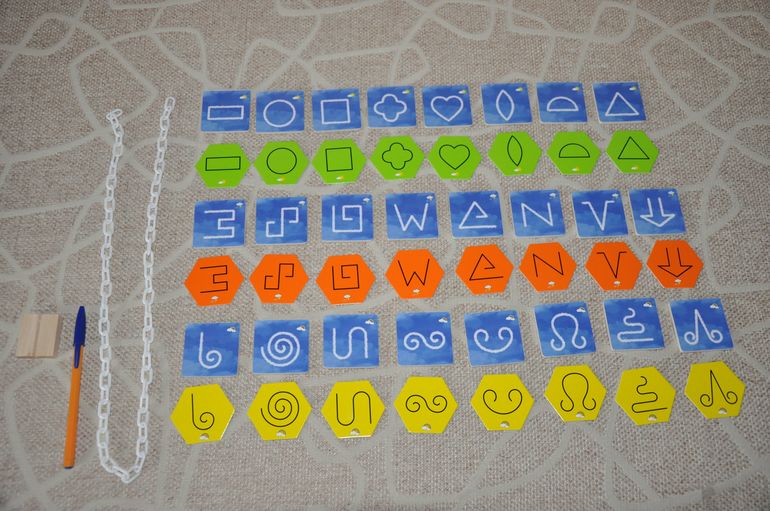 Карточек с картинками очень много и они разные по степени сложности, плюс есть 5 чистых карточек и маркер, чтобы придумать что-то своё:
