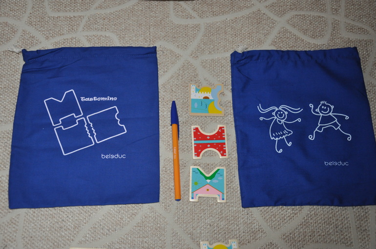 Показываем, как мы играем во второй вариант игры, где игра в домино усложняется необходимостью вытаскивать "костяшки" из мешочка на ощупь.