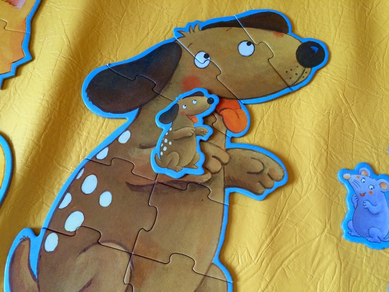 Собираем этот пазл давно, но раньше - только с подсказкой, потому что они посложнее, чем Ларсен, рамки нет, картинки фигурные.