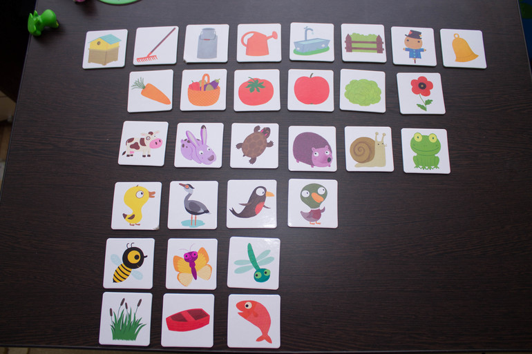 Так же можно распределять по принадлежности, это садовый инвентарь или овощи/фрукты или животные и тд. Данную игру рекомендую многим, у нас она в итоге стала хитом, а классическое лото отошло на второй план)))